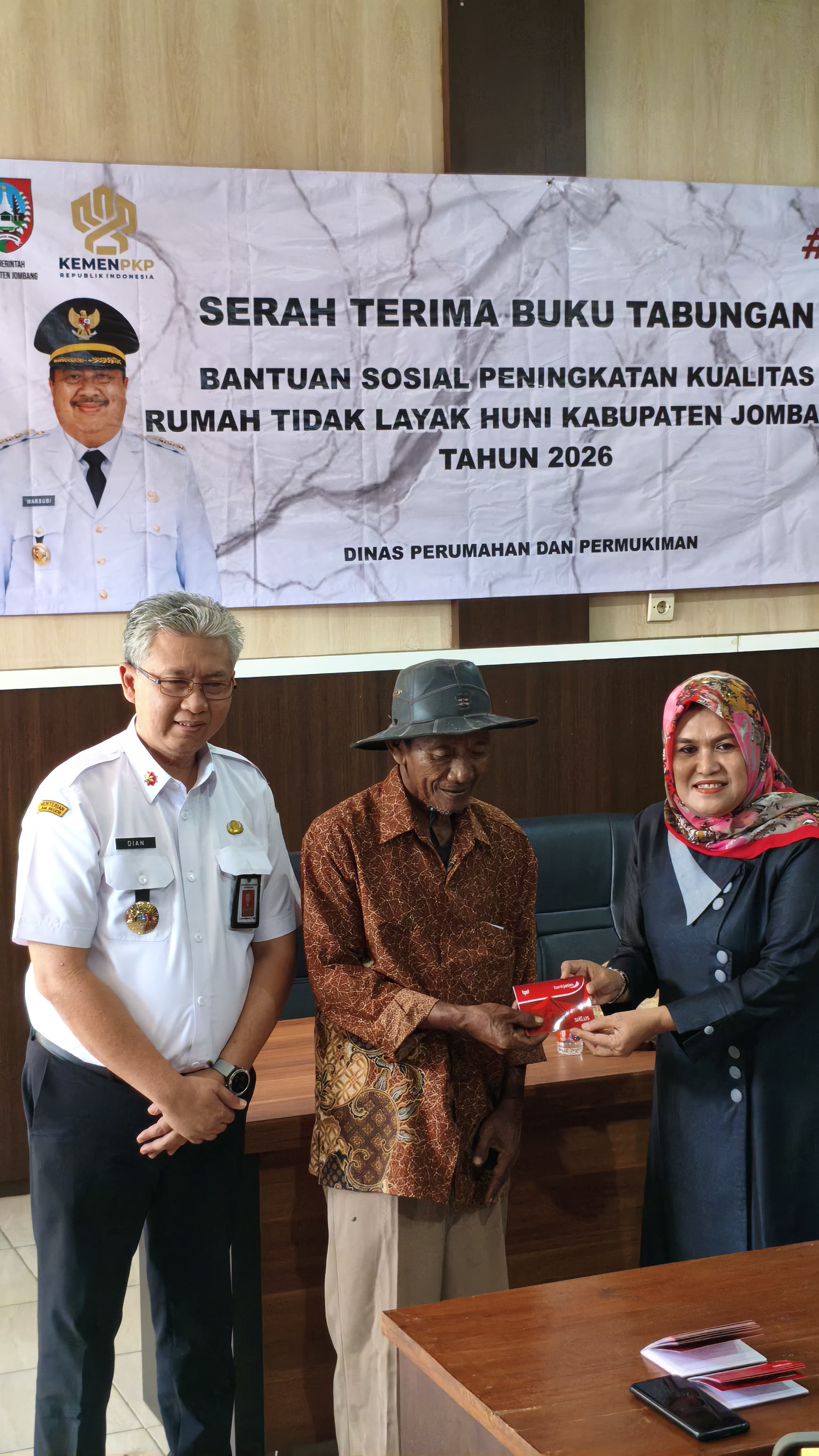 Pada Hari Rabu 15 April 2026 Dinas Perumahan dan Permukiman Bidang Perumahan mengadakan Kegiatan Pembukaan Rekening dan Serah Terima Buku Tabungan Bagi Masyarakat Penerima Program Kegiatan Peningkatan Kualitas Rumah Tidak layak Huni PK-RTLH Tahun Anggaran 2026. Dihadiri oleh Ibu Junita Erma Zakiyah, S.E Ketua Fraksi Partai Persatuan Pembangunan DPRD Kab. Jombang yang merupakan bagian dari aspirasi dari Beliau.